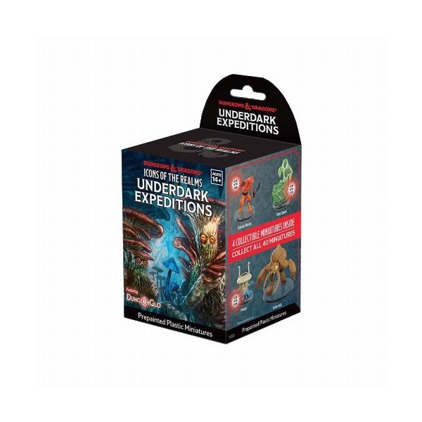 Delve deep into the Underdark with D&D Icons of the Realms: Underdark Expeditions Booster. The Underdark is the deep subterranean realm home to countless creatures like Darkmantles, Hook Horrors, Umber Hulks, and Gelatinous Cubes.