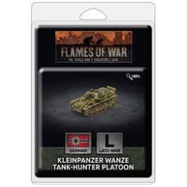 Includes three resin Kleinpanzer Wanze (Bedbug) models, three metal Panzerschreck rocket launcher assemblies and three metal drivers.