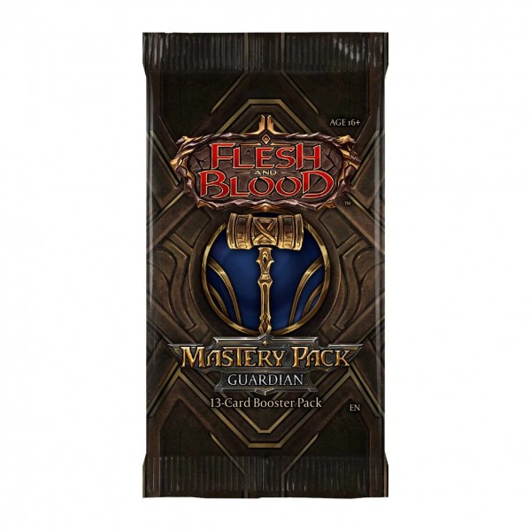 Crack, Shuffle, Play! Mastery Pack Guardian has the fastest, funnest, easiest way to play Flesh and Blood. Simply Crack 3 packs, remove the last 3 cards of each pack, Shuffle the rest, and Play!