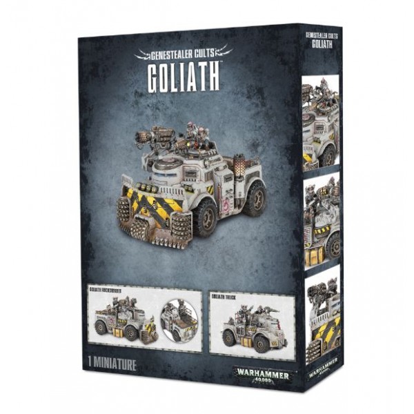 This multi-part plastic kit contains the components necessary to assemble a Goliath Truck, transport and offensive vehicle of the Genestealer Cults. It comes armed with a heavy stubber and twin-linked autocannon, and features a ton of customisation opportunities – the 4 crewmen have their own options and the wheels can be attached with high ground clearance.