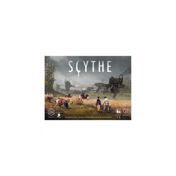 Scythe is a 4X board game set in an alternate-history 1920s period. It is a time of farming and war, broken hearts and rusted gears, innovation and valor. In Scythe, each player represents a character from one of five factions of Eastern Europa who are attempting to earn their fortune and claim their faction's stake in the land around the mysterious Factory. Players conquer territory, enlist new recruits, reap resources, gain villagers, build structures, and activate monstrous mechs. Each player begins the game with different resources (power, coins, combat acumen, and popularity), a different starting location, and a hidden goal. Starting positions are specially calibrated to contribute to each faction?s uniqueness and the asymmetrical nature of the game (each faction always starts in the same place).