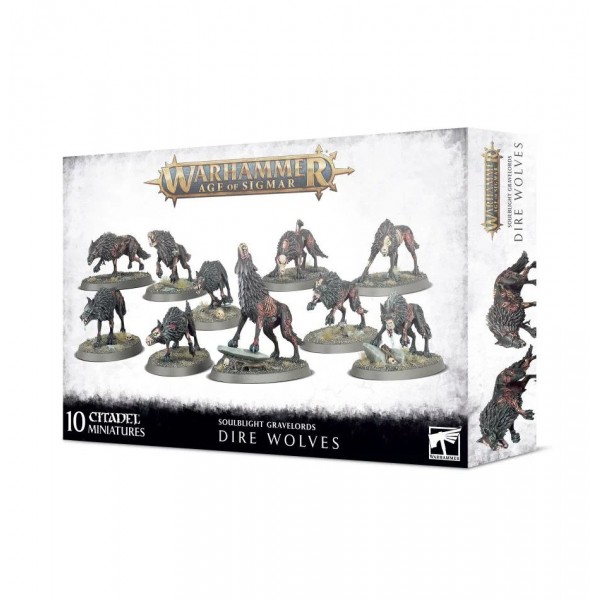 Dire Wolves are a fast Battleline unit that deserves a place (or a few places) in every Soulblight Gravelords army. They hit hard on the charge, making them the perfect choice to harass and distract your enemy or overwhelm them with numbers.